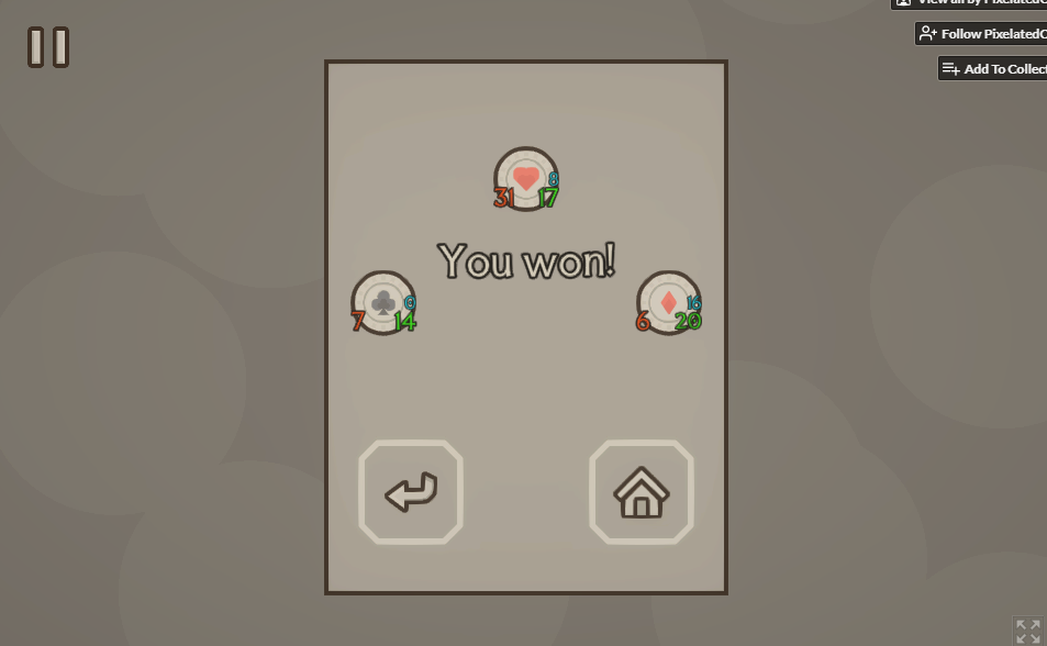 I'm not getting some combo it seems, because the final fight seems impossible, with you getting +2/+5 hp up to a solid 30hp and +1/+5 attack with tradeoffs, and enemies being 23 attack and thorns 10 and full field range. Mobility stat is particularly useless. It could use a dodge chance added to that.